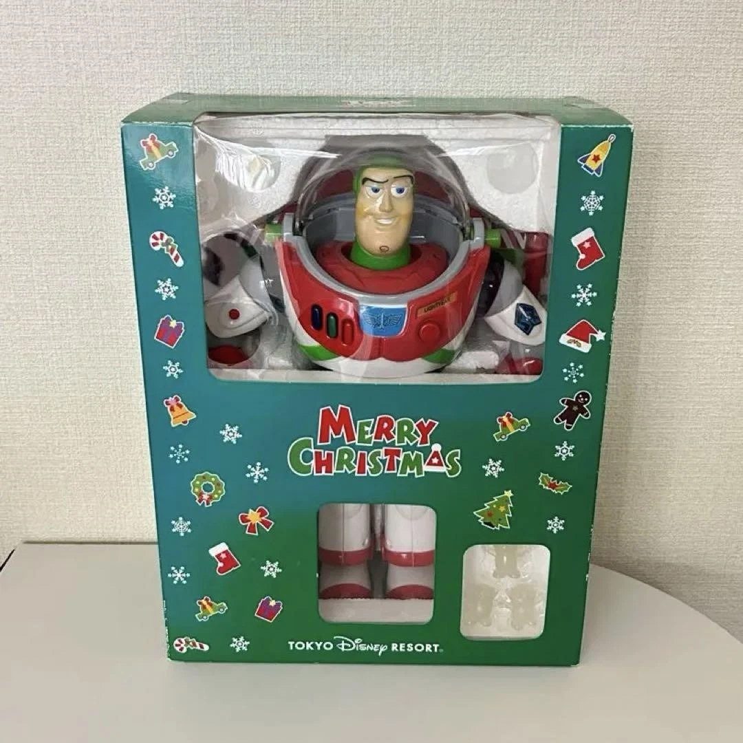 Also, keeping in the holiday spirit, the Disney Store released this holiday Buzz Lightyear, although he is not as shiny as Hasbro's. I could really only find the box from Tokyo Disneyland: